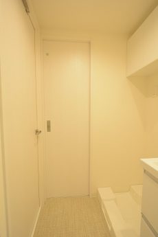 廊下突き当り左側には洗濯機スペース。綺麗な扉が付いていると洗濯機が入っているとは思わないですよね。最近は慣れましたが、初めて見た時はビックリしたのを覚えています(^-^;)棚が付いているので洗剤などはこちらへどうぞ。