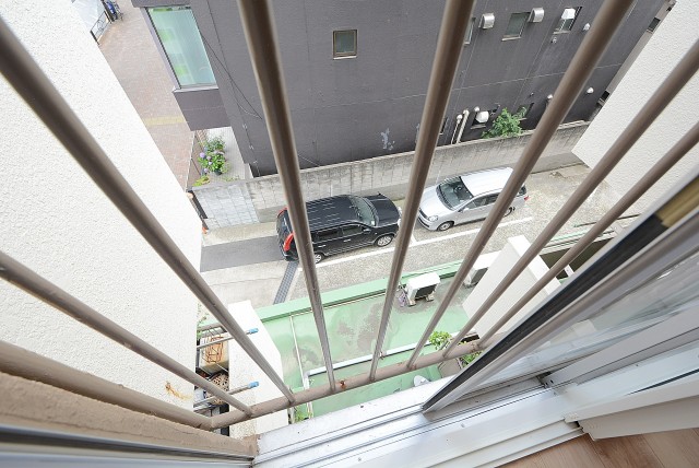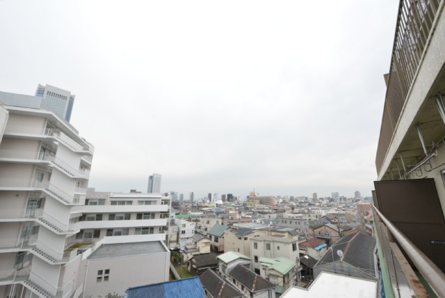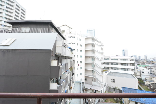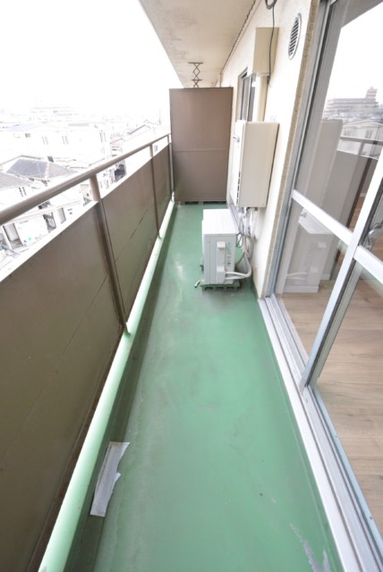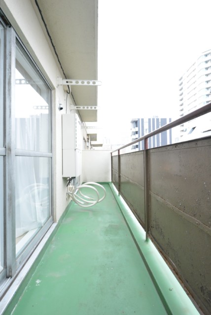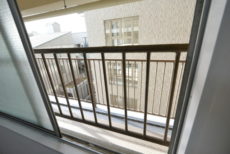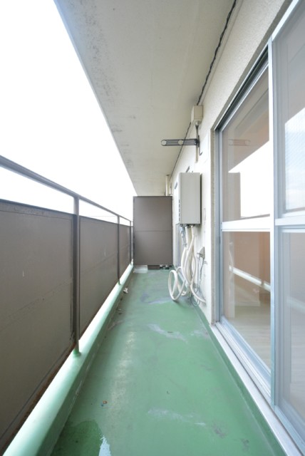 広さは5.46㎡、南東向き。足元まで手すり柵になっている開放的なバルコニーです。天井があいているのも明るくていいですね。大規模改修工事で塗り直したのでしょうか、床も手すりも綺麗になっています。