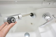 水栓のヘッドは引き出せるので、洗面ボウルを流したりに便利ですよ。様々なタイプの収納が付いていて、大きいものから細かいものまでスッキリ収まりそうですね。