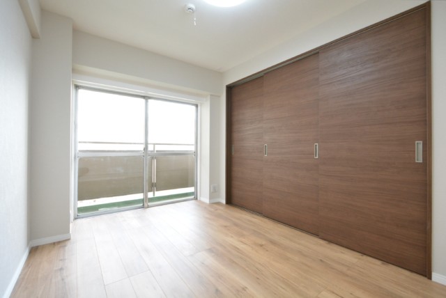 北西向きの窓があるお部屋です。廊下に面していて独立性も高いのでベッドルームに良さそうですね。養生されていて開けられませんが窓の外は外廊下になっています。
