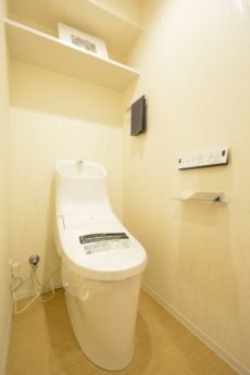 洗面室を入って左側はトイレ。TOTOのウォシュレット付き