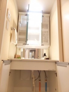 洗面台はシンクの下と3面鏡の裏側が収納スペースになっているので、いつも清潔にスッキリとさせておくことができそうです☆