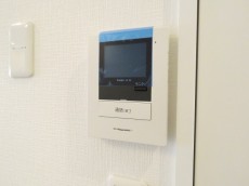 玄関ドア横にはモニター付きインターホンが設置されていて、お部屋の中から訪問者を確認出来ます。映像を見てから応対するかを決められるので安心ですよ。