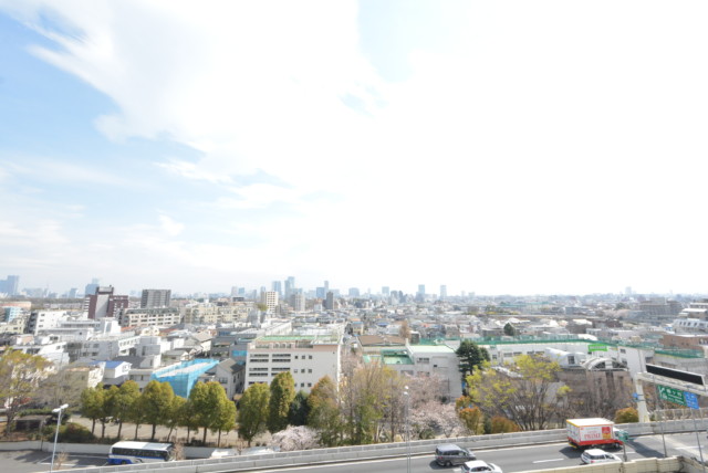 外には見事な眺めが広がっています。遠くには渋谷のビル群も霞んで見えますね。目の前には首都高速4号新宿線が通っていますので外に出ればそれなりの音はしますが、二重サッシになっていますので中は静かなものですよ(^^)