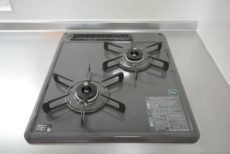 片面焼きグリルに2口コンロ。調理器具も充実です。