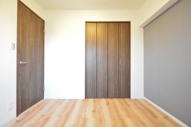 洋室の北側にはクローゼットがあります。トールサイズのクローゼットなので、下にカラーボックスなどを置けば、上中下の3段構成でたっぷり収納できそうです。