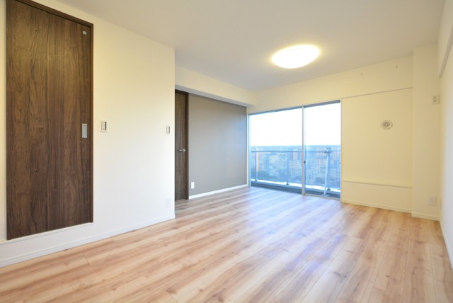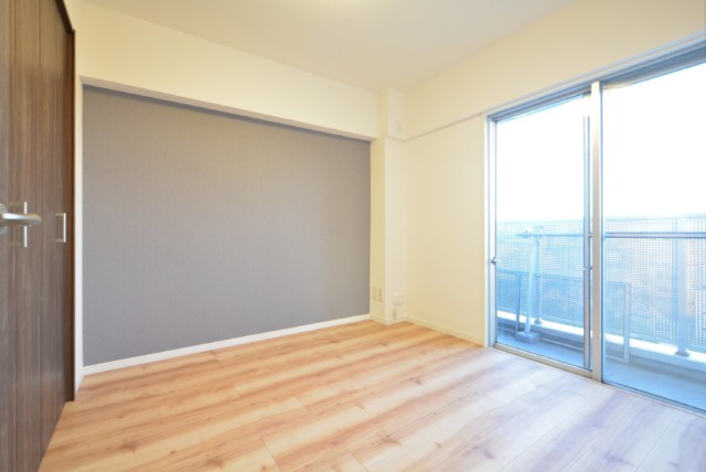 こちらは洋室。LDKと同じ南東向きバルコニーに面したお部屋です。ベッドルームになると思いますが、ベッドを置く時はドアのデッドスぺ―スに気を付けましょう。