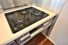 コンロは3口、グリルも付いています。グリルって魚のイメージが強いですが、他の食材にもいろいろと使えるんですよ。グリルを使ったレシピはたくさんありますので、ご興味のある方は是非調べてみて下さい。