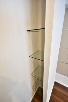 さらに、キッチンの奥にはガラスの棚があります。こちらには食材や調味料などを“オシャレ”に収納しておけますね(*^^)v