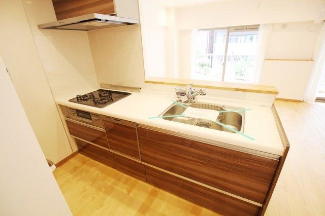 大きめのシンクに浄水器付水栓、お掃除のしやすい3口コンロに作業のしやすい広めのワークトップ、さらにはお片付けの強い味方食器洗浄機が付いています。