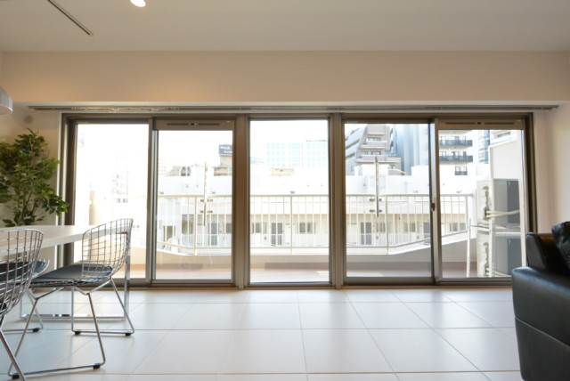 北側の窓を開けると、広尾の街を一望できるような景色と青い空が見えました。