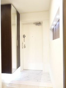 玄関を入ると右手にトールサイズのシューズBOXがつくられています。扉の半分は鏡になっているので、お出かけ前の身だしなみチェックもサッと出来て便利です。