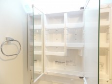 洗面化粧台は3面鏡の裏が一面収納になっており、ゴチャゴチャしがちな水廻りのハブラシや小物もスッキリ収納いただけます。洗面ボウルはスタイリッシュなスクエア型。
