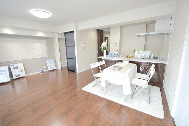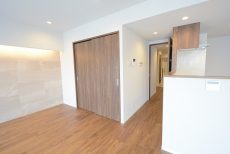 こちらは約16.8帖のリビング・ダイニング・キッチン。南東向きバルコニーに面した大きな窓があるお部屋です。