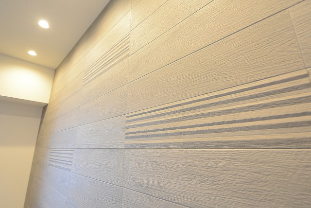 タイル張りのオシャレな外観。長いアプローチを通り抜け