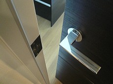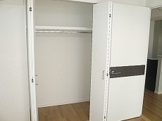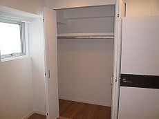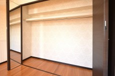 壁一面の扉に鏡の付いたクローゼットは十分な大きさがあります。
