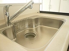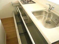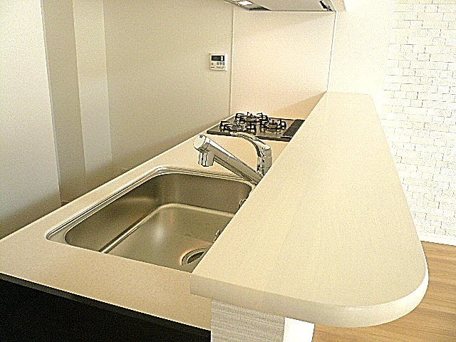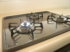 設備は3口ガスコンロにグリル、浄水器一体型水栓や食洗機も付いて充実しています。