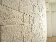 玄関正面にディスプレイスペースを備えたワンランク上の雰囲気を漂わせる玄関ホール。床には高級感のある大理石が貼られています。まるでホテルのスイートルームのようですね! 玄関照明は人感センサー付。