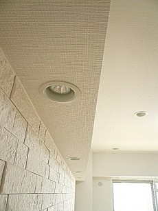 西向きのバルコニーに面したお部屋です。自然の木目を生かしたナチュラルなテイスト。折り上げ天井にも建具と揃いの木目パネルが貼られていて、包み込まれるような安心感を与えてくれています。色使いがシンプルな分、様々な照明が明暗によるアクセントを付けています。