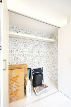 玄関を上がると奥まったスペースがありますので背の高いものや収納棚などを設置できそうです。