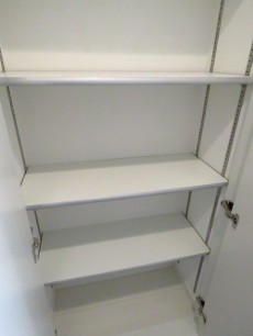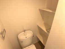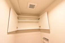奥には大きな棚が設けられているので、トイレットペーパー等の消耗品などはこちらに収納することが出来ます。