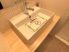 洗面ボウルとカウンターは一体型なので濡れた物を置いても気にならず、お掃除も楽です。