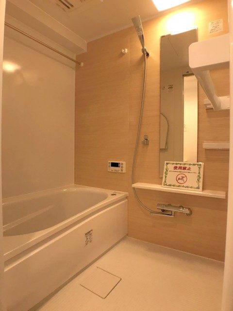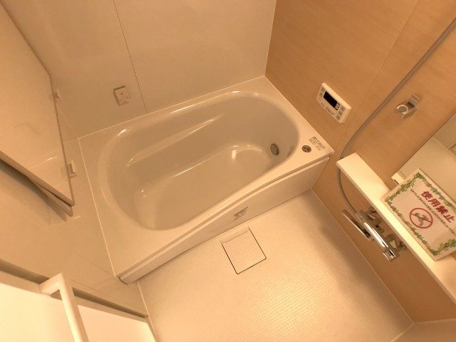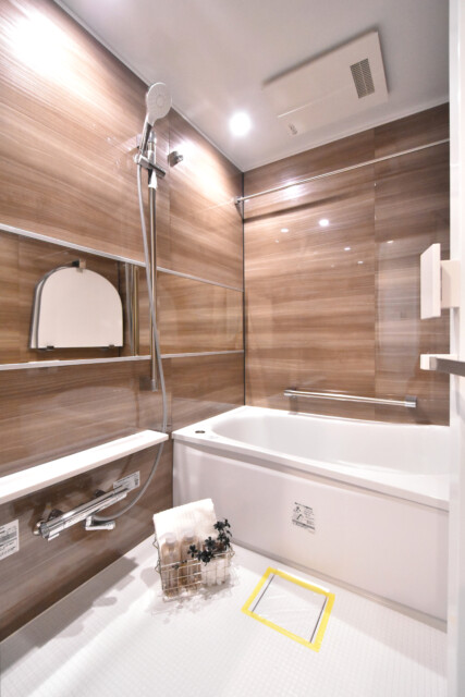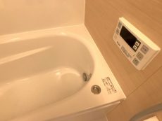 バスルーム。追い焚き、浴室換気乾燥機能付きと設備が充実しています。