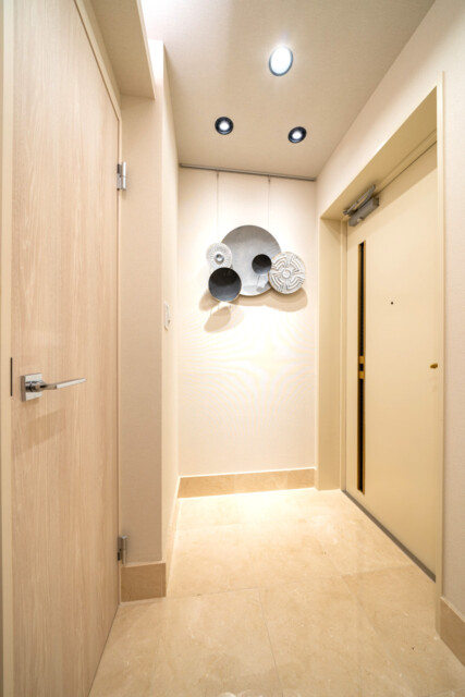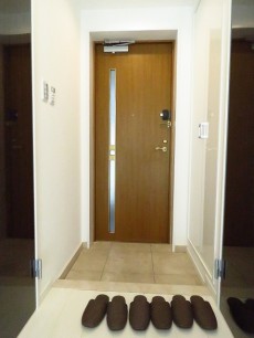 玄関ドアのスリットから漏れる光がセレブ感を漂わせています (・`ω´・ ○)
