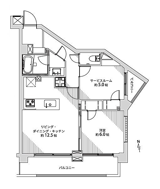 サービスルームとは建築基準法上居室と認められないお部屋のこと。あくまでも法律上なのでリノベ物件の場合は普通の洋室として使えることがほとんどです。主に採光などが原因になるんですが、今回のお部屋はバルコニーが付いているし・・・バルコニーへ出てみましょう。