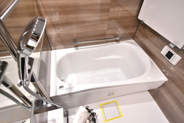 追い焚き機能付きユニットバスは「ふろ自動」ボタン一つでお風呂を沸かすことが出来ます。保温や温め直しもしてくれるので、ご家族でお風呂の時間がバラバラになっても大丈夫!いつでも温かいお風呂に入れますよ。
