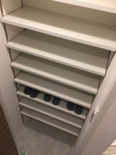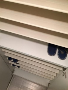 玄関にはトールタイプのシューズボックス。棚板の高さが調節できるのでブーツやヒールなどの背の高い靴もスッキリ収納可能です。