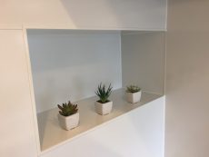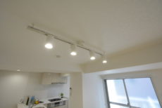 天井にはダクトレールが設置されていて照明の位置を移動出来ますので、レイアウトが照明に制約される事もありません。ニッチカウンターは、PCデスクとしても使えそうです。