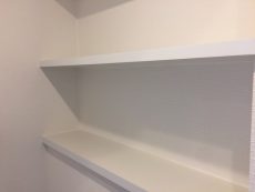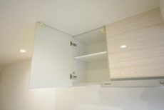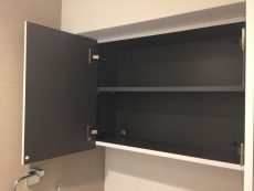 トイレには吊戸棚も付いているので、トイレットペーパーのような消耗品も掃除用具もまとめて収納することが出来ますよ。