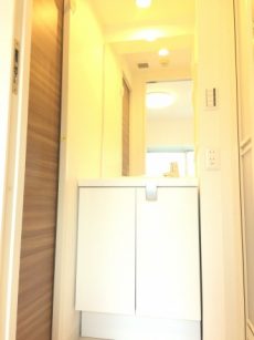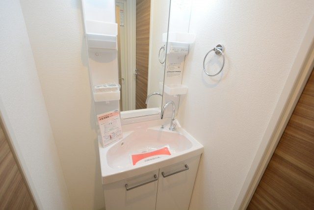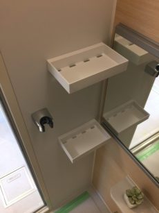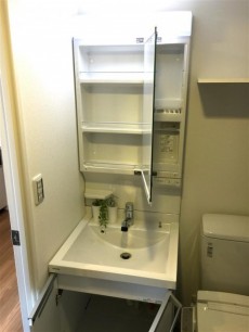 右の壁には、収納棚。歯ブラシから洗顔フォームまでゴチャゴチャ散らかりがちな洗面まわりの物もスッキリお仕舞いただけます♪♪