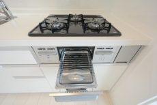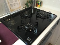 3つ口コンロはお料理好きの方には嬉しいですね♪シンクは大きめで使い勝手◎浄水機能付きの水栓でうれしい設備。