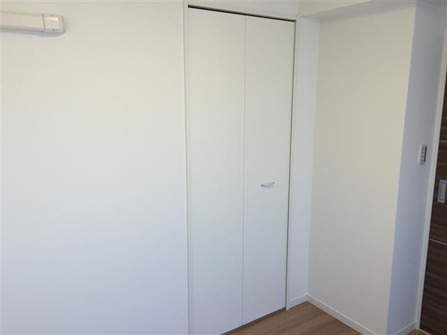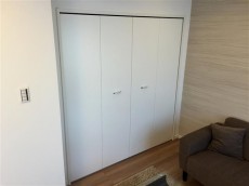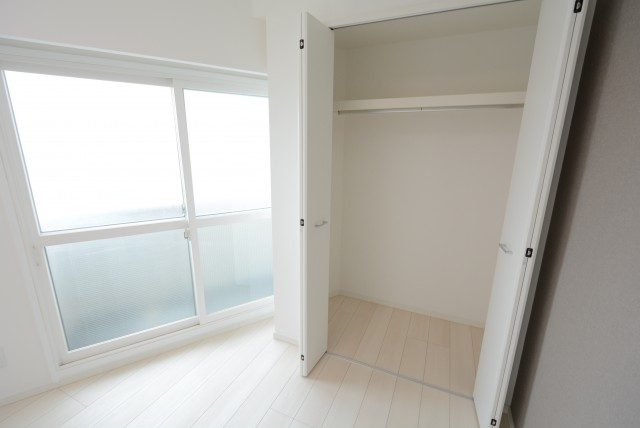 窓の外には、間取り図によればバルコニーがあるはずなんですが・・・ありませんでした^^;)収納は部屋幅いっぱいを使った大きなクローゼット。全面が開くのでとても使い易そうです。