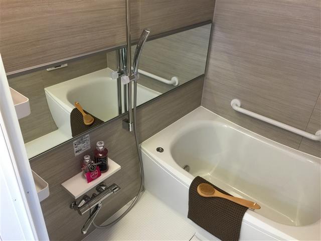 バスルームは、優しい木調のパネル☆ゆっくり大きなバスタブにつかって疲れを癒せそうです♪♪追い焚き機能付きでいつでも暖かいお風呂に入れます。
