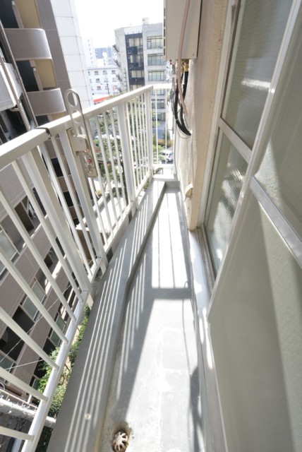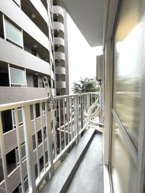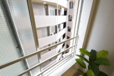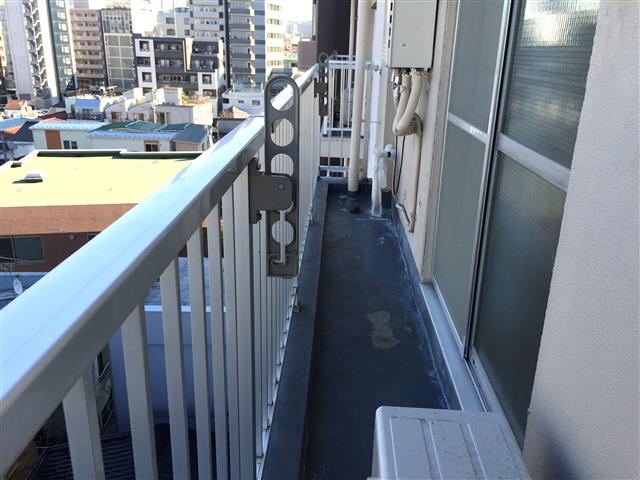 奥行きがなくコンパクトですが物干し金具が付いていてお洗濯物は干せそうです。ただし正面の建物が近いのでプライバシーが気になるかも。そんな時に浴室換気乾燥機のありがたみを感じますね♪