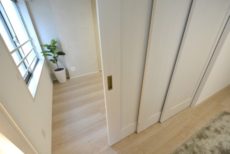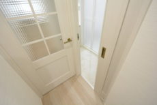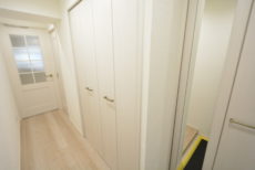 LDKからは横に向かって通路のようなスペースがあり、奥には洋室が二つ並んでいます。左側手前の扉は一見リビング収納のように見えますが実は洗濯機スペース。まさかこんなところに洗濯機があるとは思いませんよね。では奥の洋室を順番に見てみましょう。