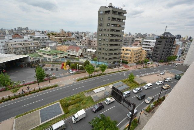 マンションの前面道路は、山手通りですので交通量は多めです。しっかりした歩道がありますので、歩きやすい道です。