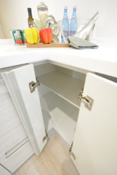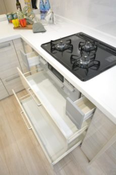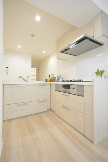 L字型の調理台。作業スペースがとり易かったり、作業効率が良かったりといろいろメリットがあります。