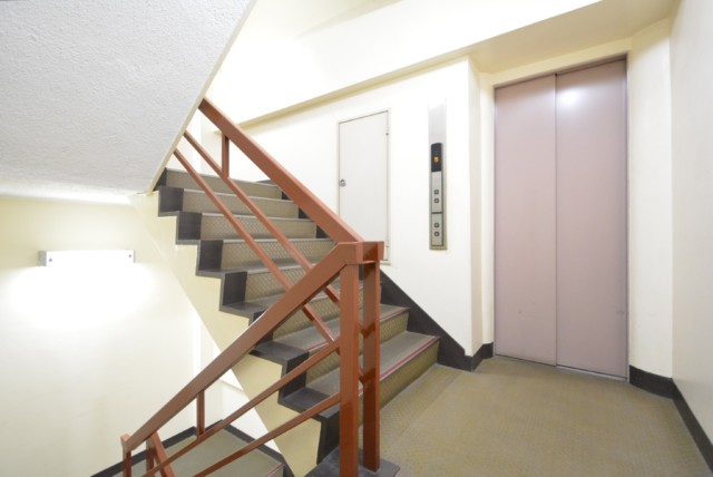 エレベーターを5階で降りると、内階段のホールに出ました。エレベーターを待ちきれない時は階段を駆け下りる事になりそうです(^^;)