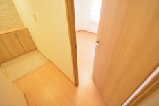 ドアを開けると正面は壁。廊下は右側の上り口から続いています。戸口で応対すればお部屋の中を見られなくて済むんですね(^^)