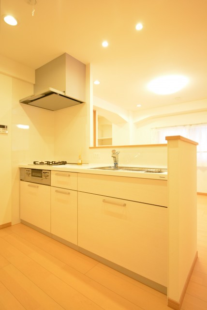 キッチンはリビングからはあまり目立たないようになっていますので、多少散らかっても大丈夫(笑)