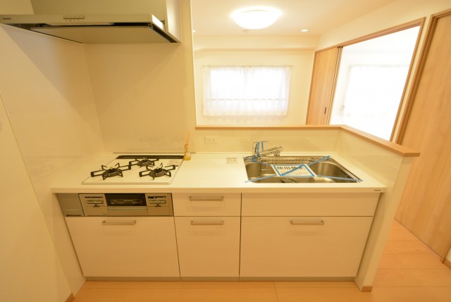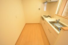 キッチンはリビングダイニングの扉のすぐお隣。窓がついているスペースです。