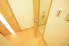 振り返って玄関の様子。ロックにはサムターンカバーも付いています。