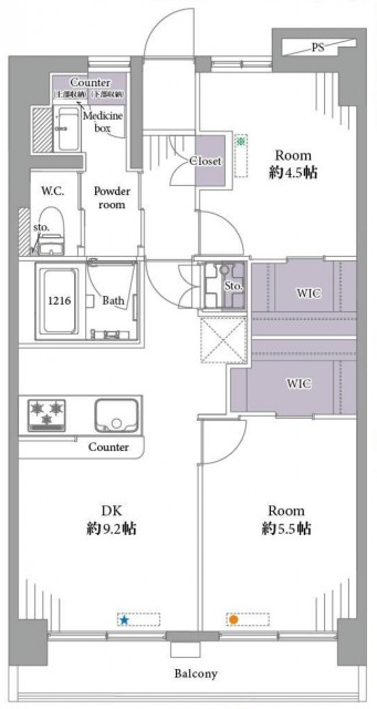 こちらは約9.2帖のダイニング・キッチン。南東向きのバルコニーに面した明るいお部屋です。