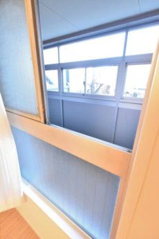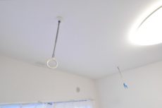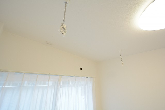 天井には物干し金具が設置されています。一階の高さのバルコニーで、外にお洗濯物が干しづらいのでこれは助かりますね。乾燥する冬やエアコン使用時などには、乾燥防止にもなるので一石二鳥ですよ。使わない時は簡単に外れますのでご心配なく。