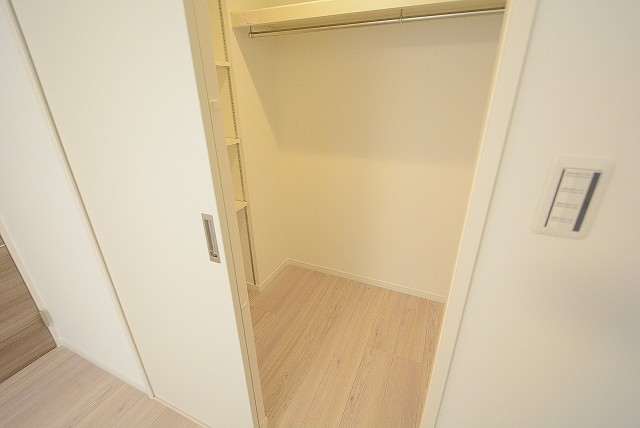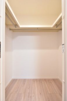 バルコニーとリビングに隣接したお部屋です。仕切りを開放すればLDKの一部として使うことも可能。扉が吊り下げ式で床にレールがないので、より一体感のあるお部屋になりますよ。お掃除が楽なのも嬉しいですね。クローゼットは間口が広くとても使いやすそう。