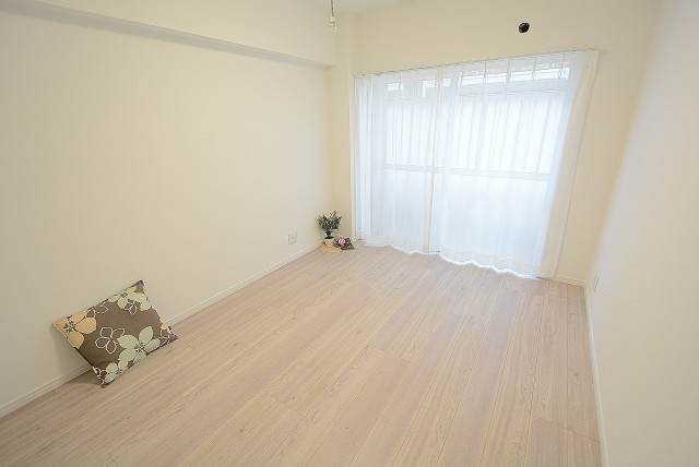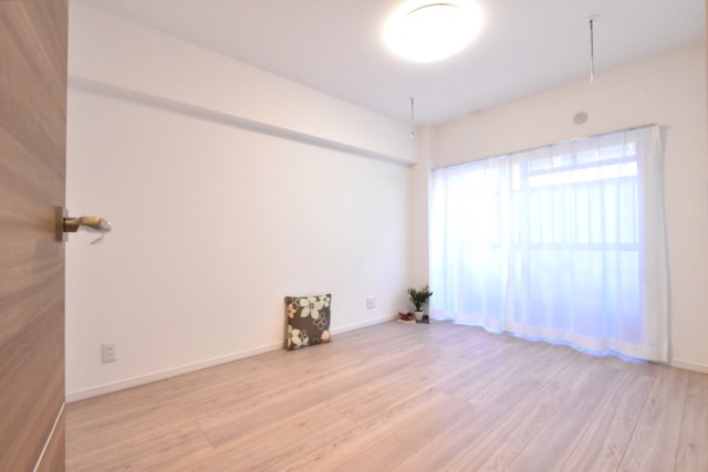 こちらは約5.5帖の洋室。DKと同じ南西向きバルコニーに面したお部屋です。シンプルな色使いで家具も合わせやすそうですね。